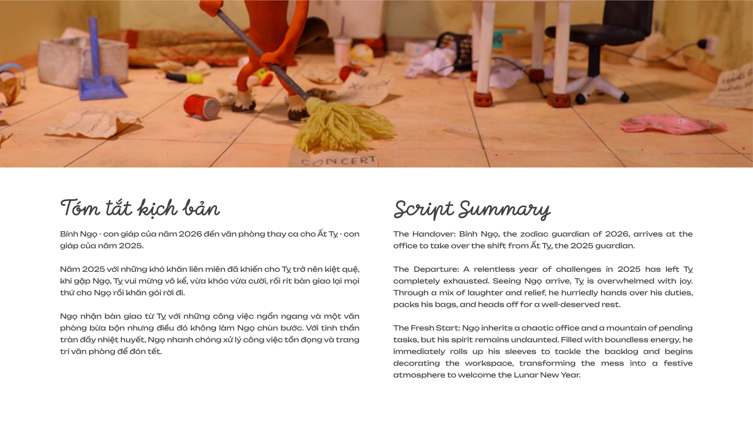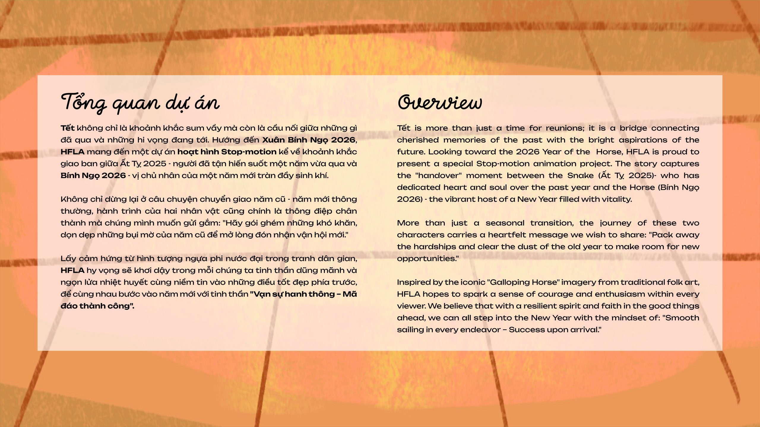 Tết is more than just a time for reunions; it is a bridge connecting cherished memories of the past with the bright aspirations of the future. Looking toward the 2026 Year of the Horse, HFLA is proud to present a special Stop-motion animation project. The story captures the “handover” moment between the Snake (Ất Tỵ 2025)- who has dedicated heart and soul over the past year and the Horse (Bính Ngọ 2026) – the vibrant host of a New Year filled with vitality.